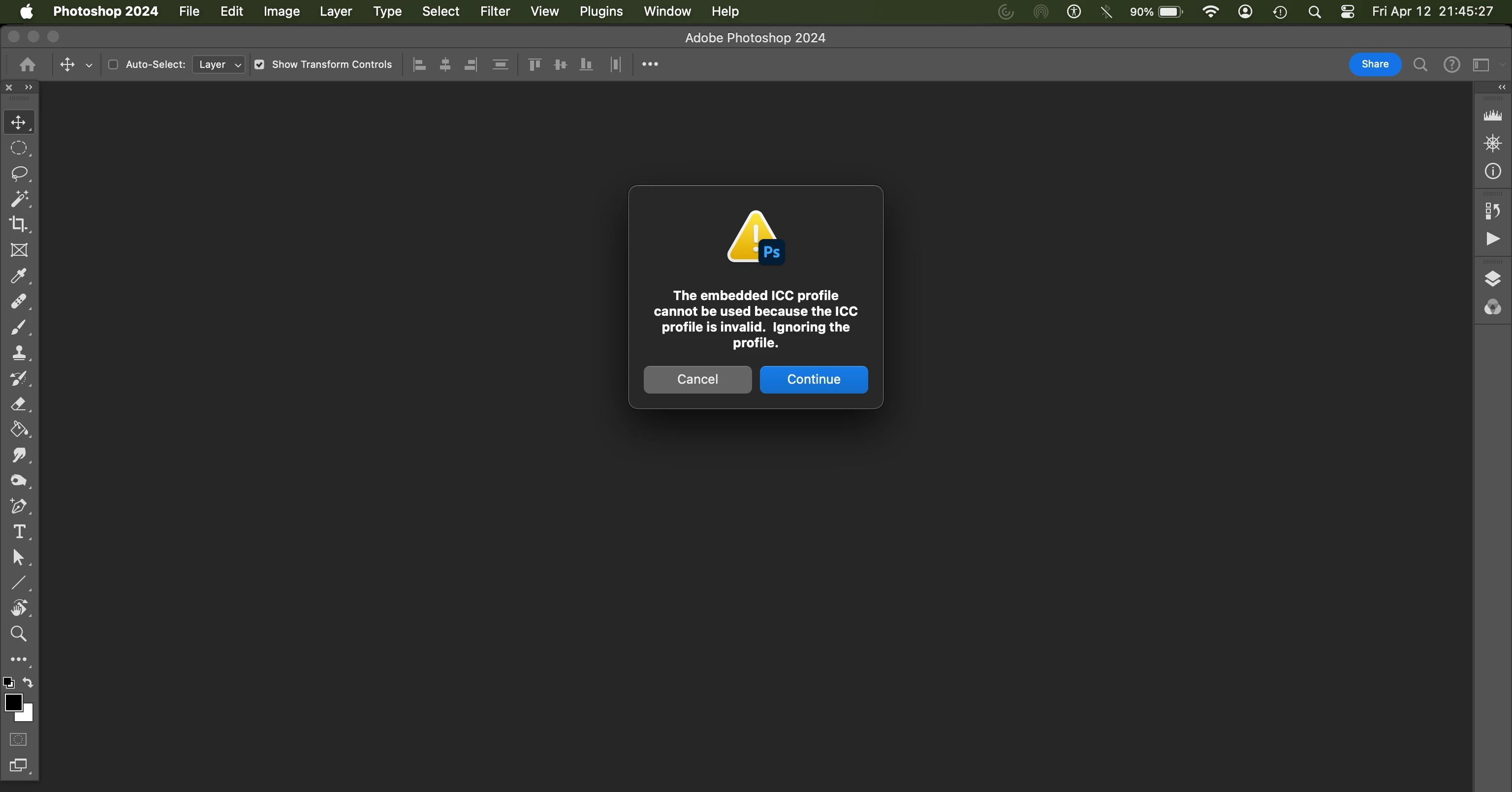 "The embedded ICC profile cannot be used because the ICC profile is invalid.  Ignoring the profile."