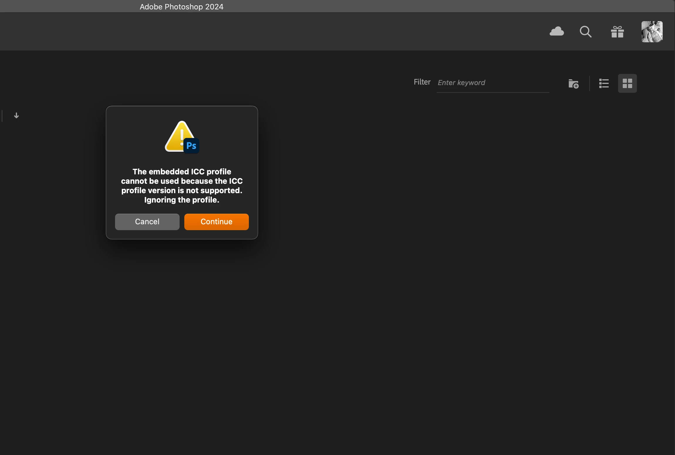 ICC input profiles that work in PS 2023 open an invaild error in PS 2024 and cannot be assigned.