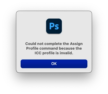 P: Photoshop 25.2 & up Could not complete the assign profile command because the ICC profile invalid