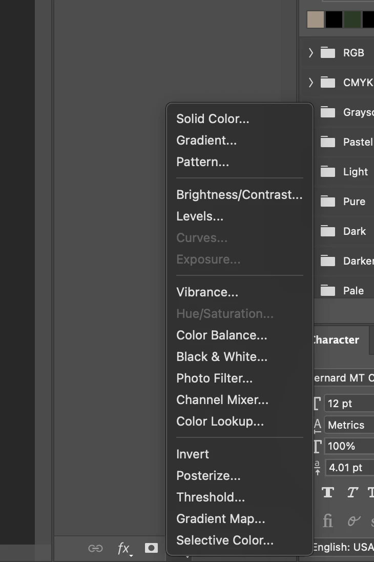 P: Photoshop 26.2 adjustment layers grayed out on cmyk file.