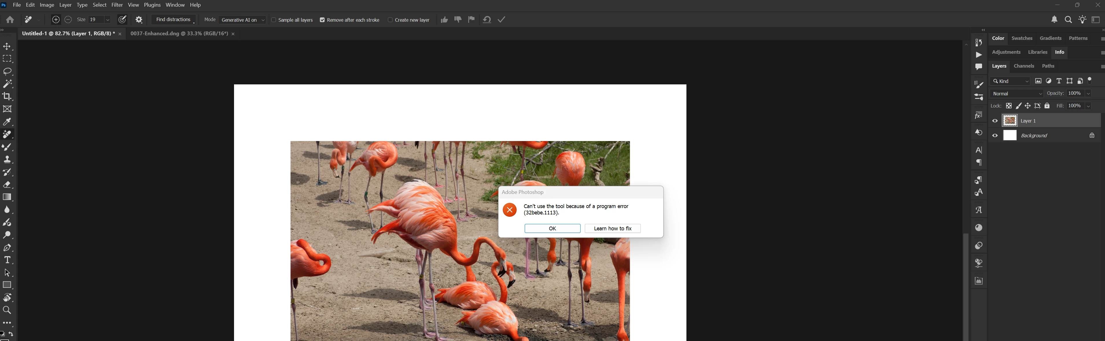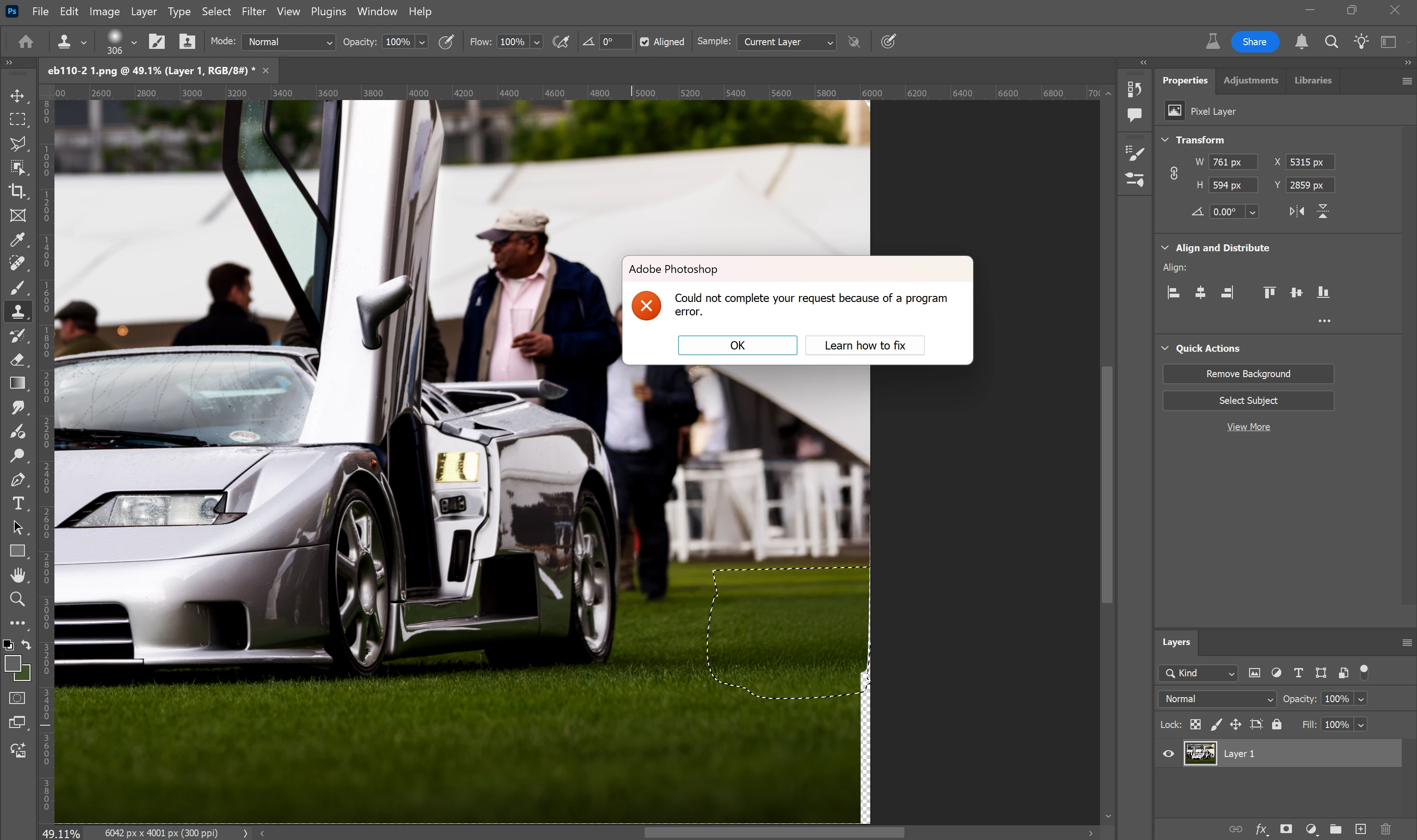 P: Photoshop 26.8.1 Remove tool shows "program error" after using Generative Fill with Transparency