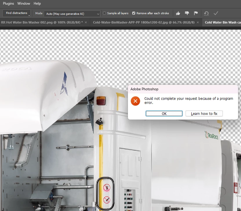 P: Photoshop 26.8.1 Remove tool shows "program error" after using Generative Fill with Transparency