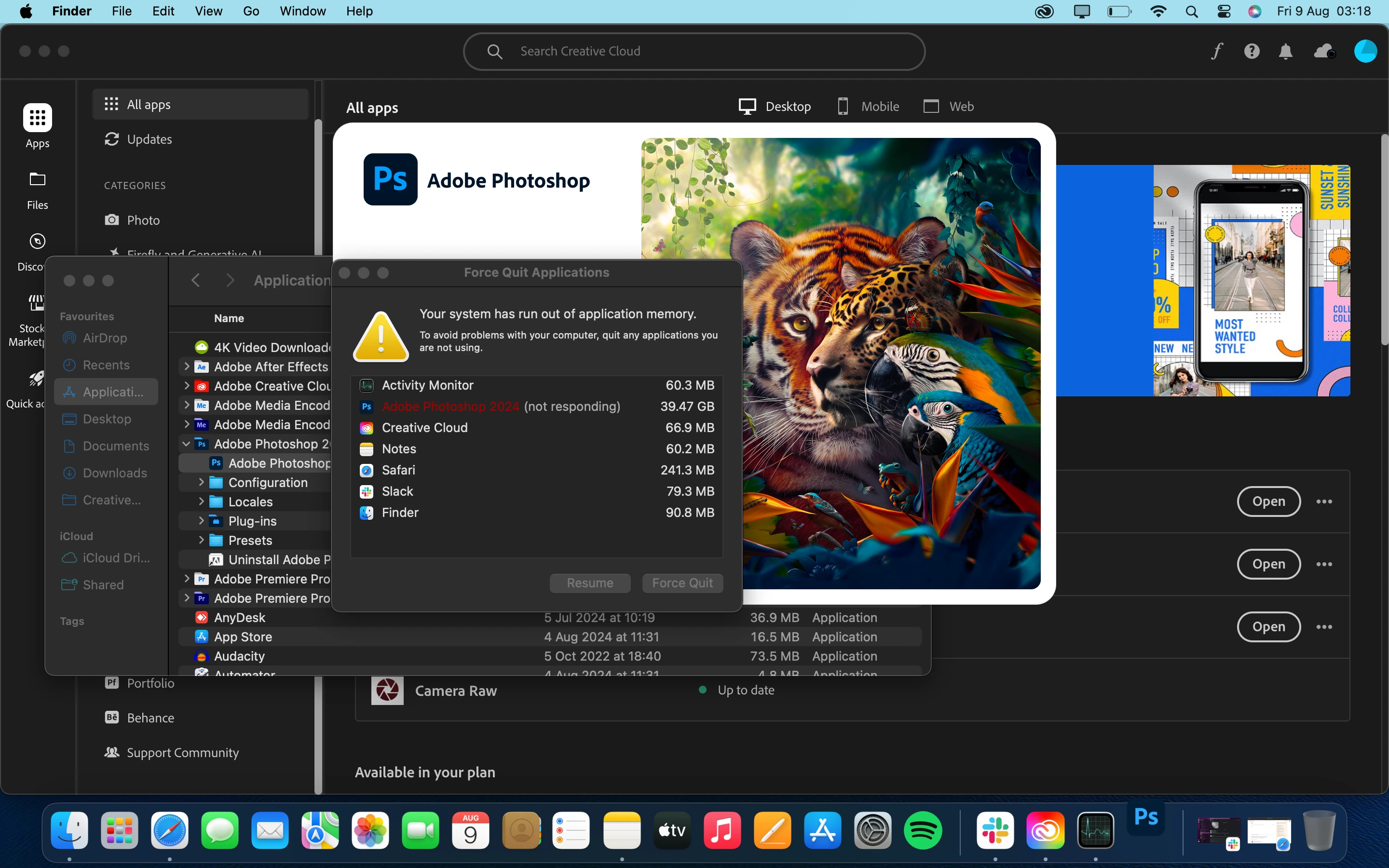 I'm not sure why as I've changed nothing but neither Photoshop of Photoshop Beta are opening for me. I just see the opening screen for about 30 seconds and then I get an error saying its using too much memory.