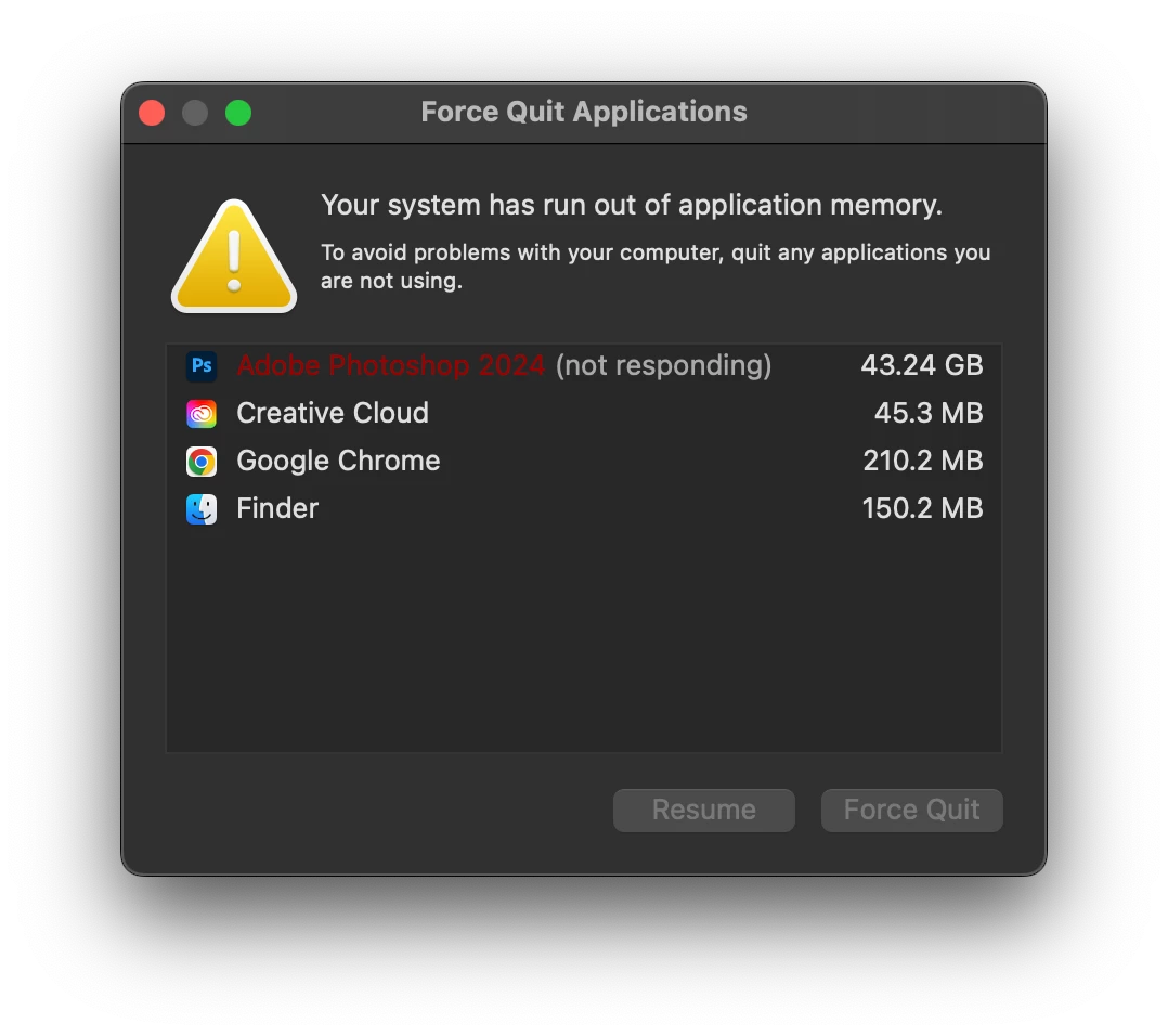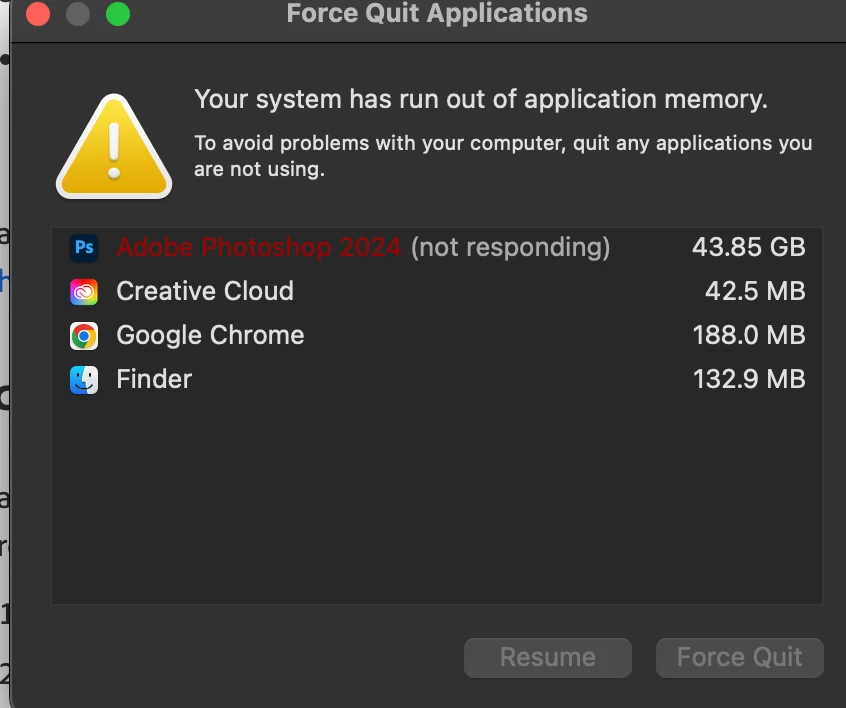 As you can see from the picture, Photoshop is using around 40 GB of memory, is this normal? I've never monitored that before so I'm not sure.