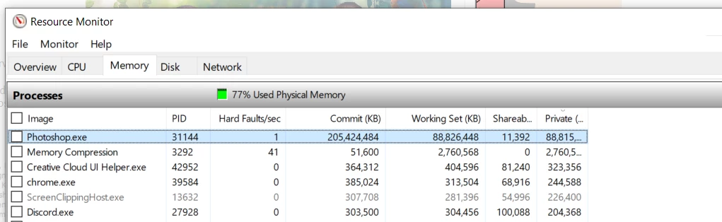The issue started yesterday after I cleared the cache on my laptop. Shortly after, I tried to open Photoshop, but it would get stuck either loading fonts or plugins. Task manager would then read massive memory pressure from Photoshop.