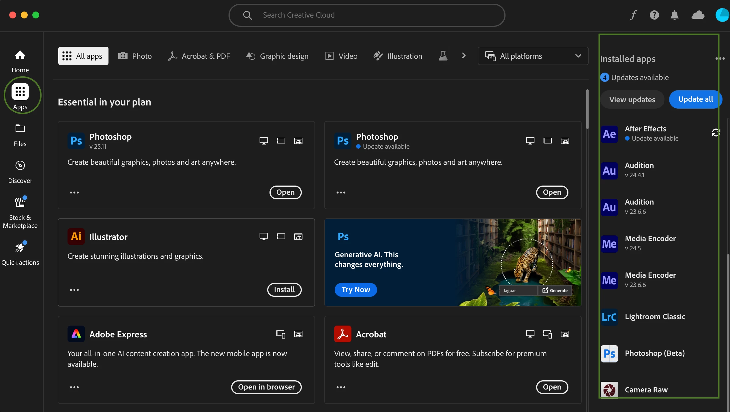 Interestingly, Premiere Pro and After Effects do load, though they take longer than usual. Acrobat, on the other hand, works perfectly fine.
