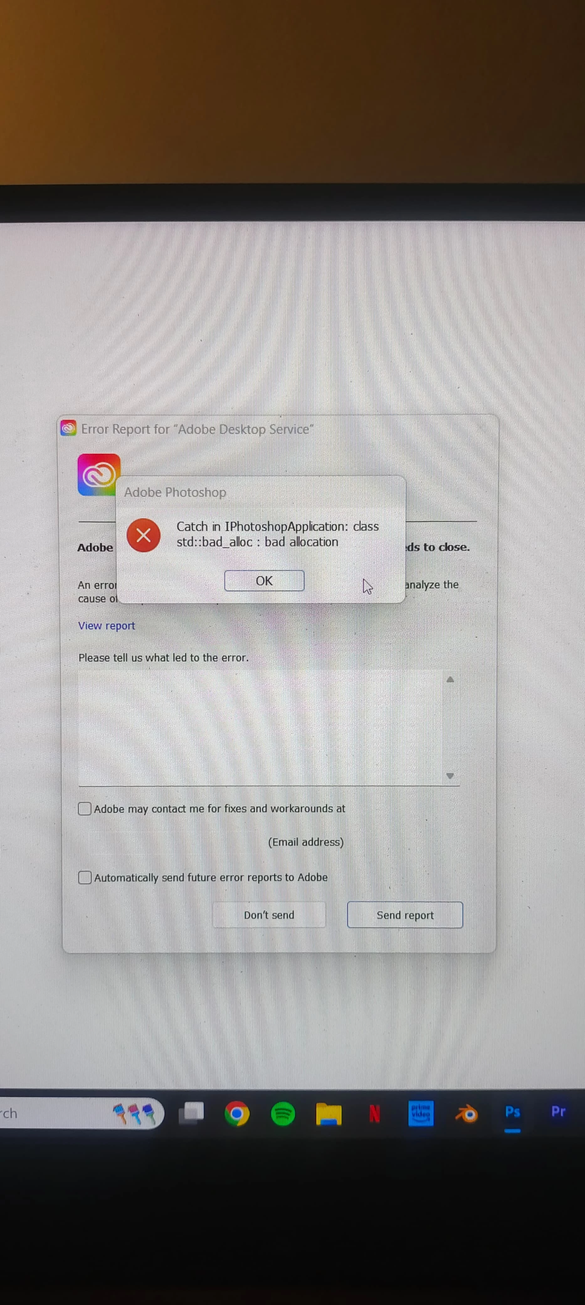 And no i'm not running it on a potato i'm running it on an Alienware Aurora 4090, it should have more than enough power to handle this and Photoshop ran perfectly fine for months. Then just today it crashed and has never started up again.