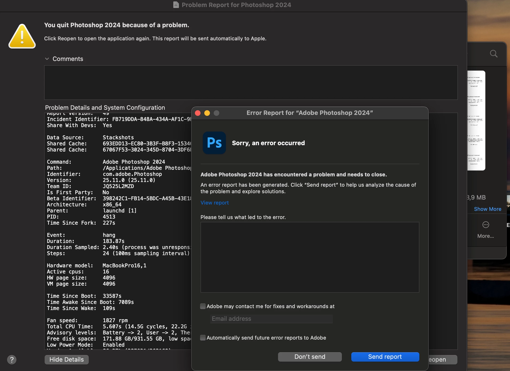 And no i'm not running it on a potato i'm running it on an Alienware Aurora 4090, it should have more than enough power to handle this and Photoshop ran perfectly fine for months. Then just today it crashed and has never started up again.