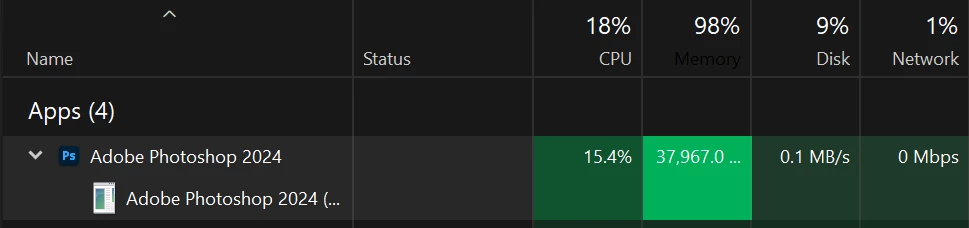 Photoshop lastest version was working fine, today I tried to open the app but it is stuck on lunching and not opening at all, last few days I had a problem with which is when I was closing the app send immedetly error and I was send repot all the time.