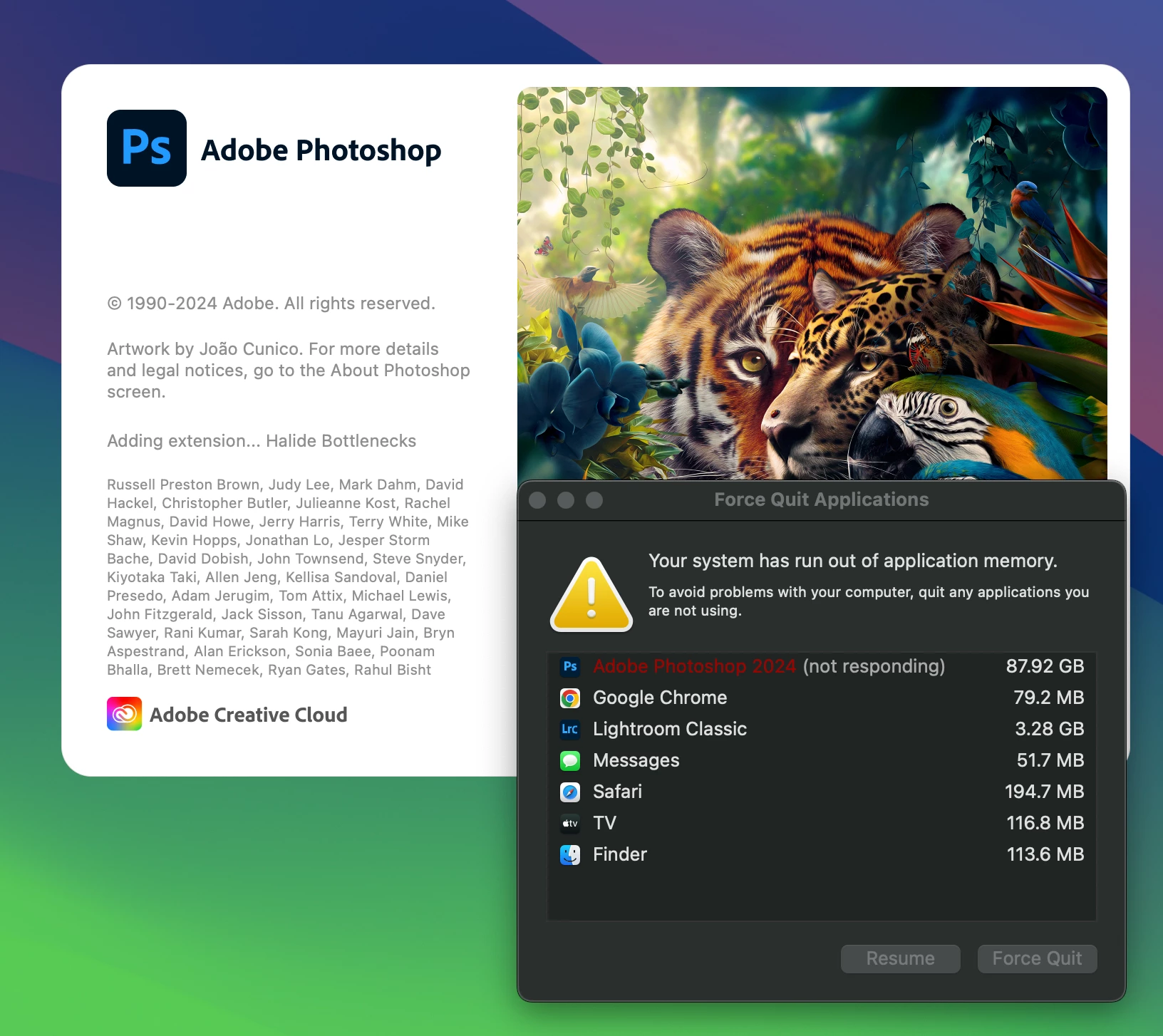 When I try to open photoshop - it uses all my memory and some - it always sticks on the "Adding Extension....Halide Bottlenecks"