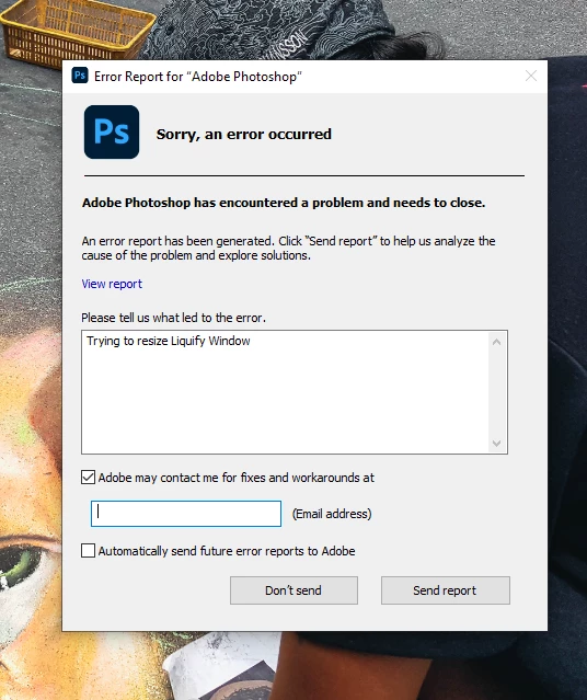 Hi @yoannaa14359550 and @CShubert, I can confirm the problem trying to resize the liquify window. I was trying to resize it from the bottom right panel edge. Crash report submitted. (Windows 10 Pro v21H2; Photoshop 23.5 release)