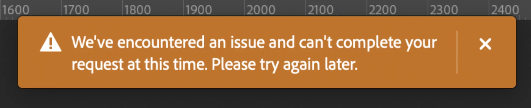 This must be an Adobe server issue. is there an update on when this will be resolved? Have to revert to the old fashioned way of doing things - but generative AI definitely sped up the process.
