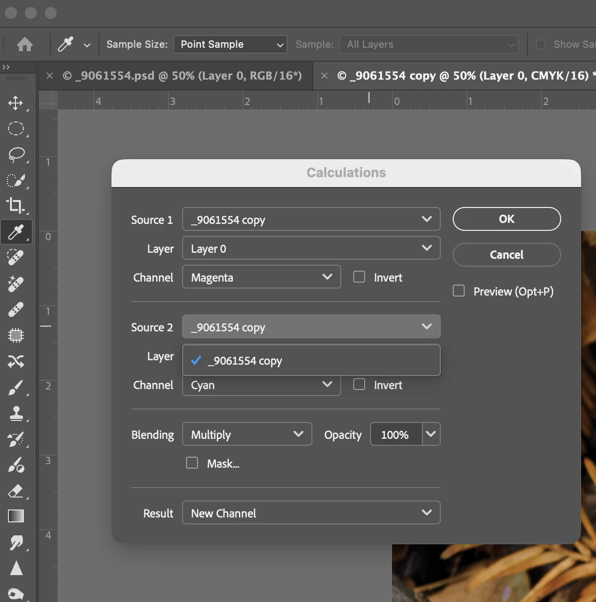 P: Photoshop v27.4.0 Image > calculation > Source Dropdown list does not show other copies