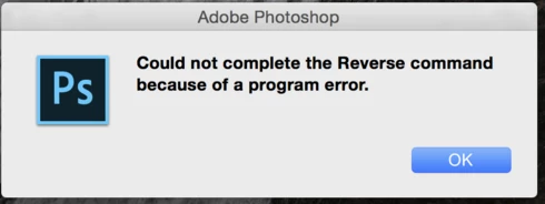 Bug Report: Layer Stack bug in Photoshop 2015.5 Mac OS X Yosemite. - After opening layer in a stack trying to reverse the order of the layers using Layer > Arrange > Reverse - the following message is displayed - 'Could not complete the Reverse command because of a program error'