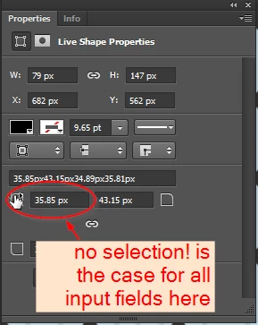 Properties Window: There is no easy way to select (and overwrite) the numeric values quickly. The selection behavior is inconsistent with Character/Paragraph window.