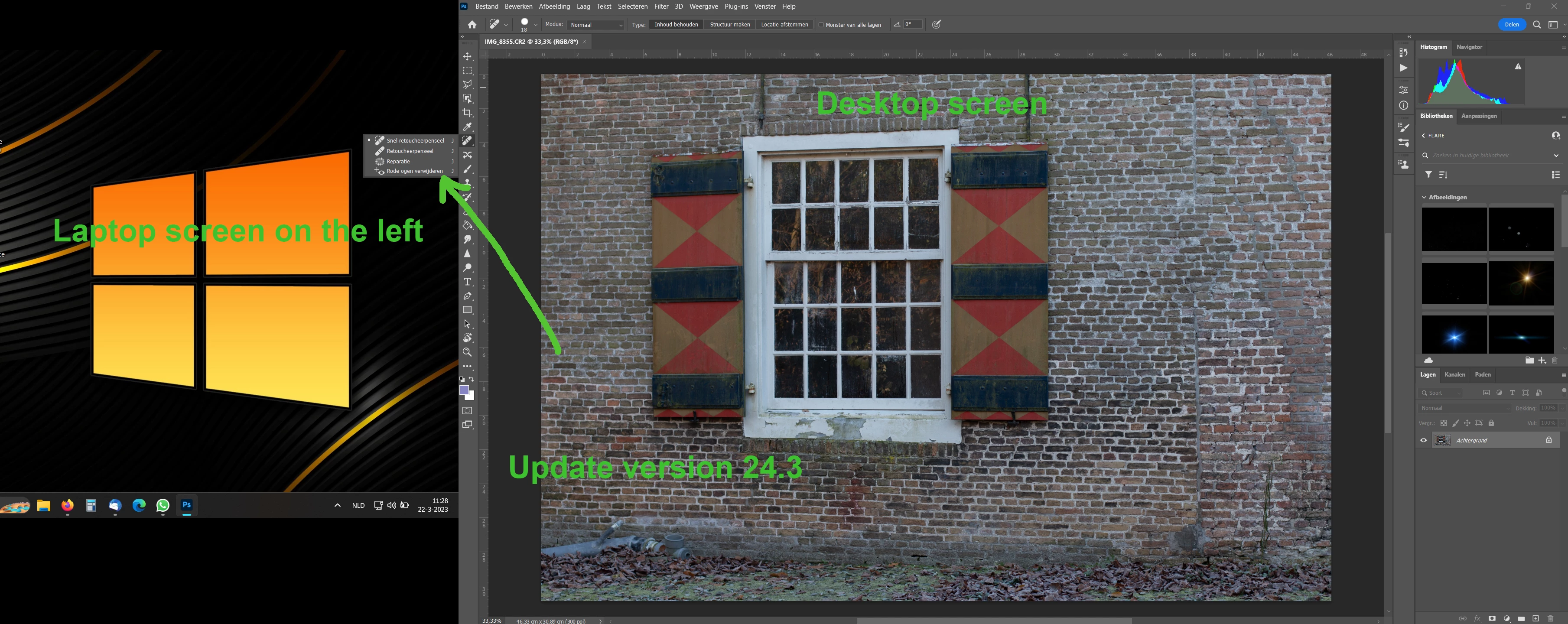 As ferramentas aparecem no monitor ao lado, nas versões anteriores apareciam dentro do Phothosp mesmo, como faço para corrigir? (The tools appear on the side monitor, in previous versions they appeared inside Phothosp itself, how can I fix it?)