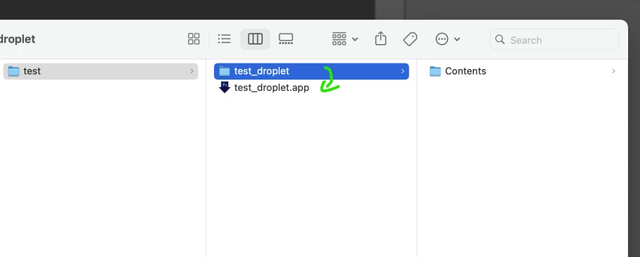 My bad, ive assumed your "Contents" folder actually had stuff like Droplet.8BDR etc in it and the app just wasnt packed into .app. Not sure how it happened exactly but I kinda feel like it happened to me before literally like 2-3 weeks ago when I've also learned the hard way about the gatekeeper thing but for me it that's the main issue, it creates droplets for me just fine. Also .exe droplets on Windows are working without any issues/permissions/approvals