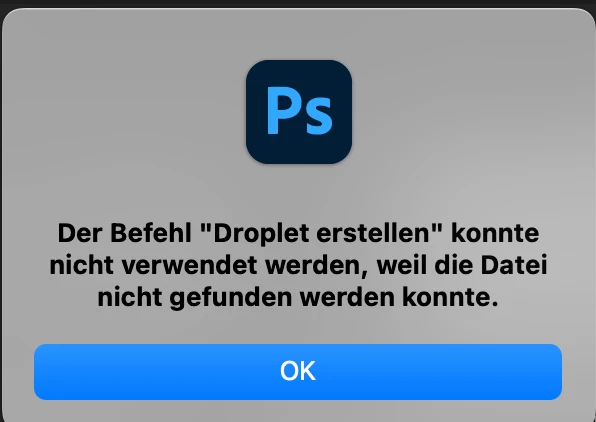 P: PS 26.5 Droplets Could not complete the Create Droplet command because the file was not found.