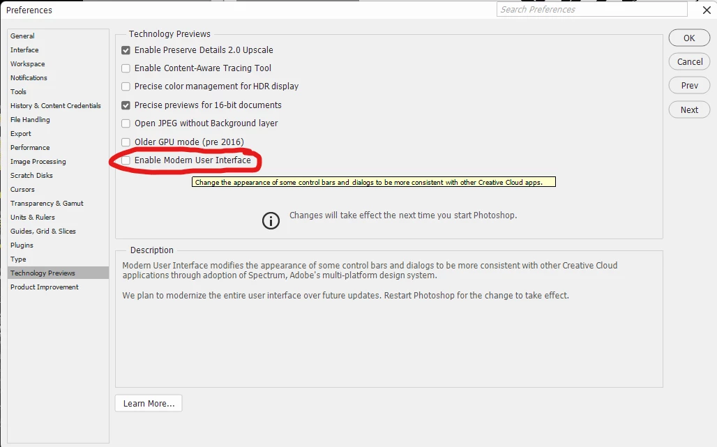 The newly added modern user interface does not preview when using “apply image”. It also does not save the last known state/settings of apply image like it has in the past. This means if you are doing multiple apply images you have to select your settings every single time which is a huge pain. Please fix this so preview works and last used state/settings is saved or keep this options in the preferences so I can turn off modern user interfaces. It’s great Adobe wants to modernize the UI. Just make sure it works the same as before.
