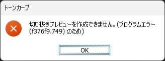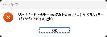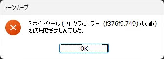 私もWindows 11 Pro 25H2のPhotoshop 27.4でトーンカーブでチャンネルを切り替えようとすると同じf376f9.749エラーが出ることがあります。