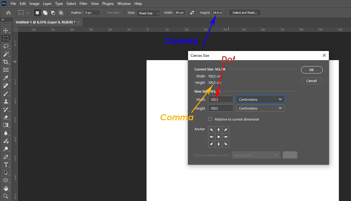 P: PS 27.4 Canvas Size decimal separator issue