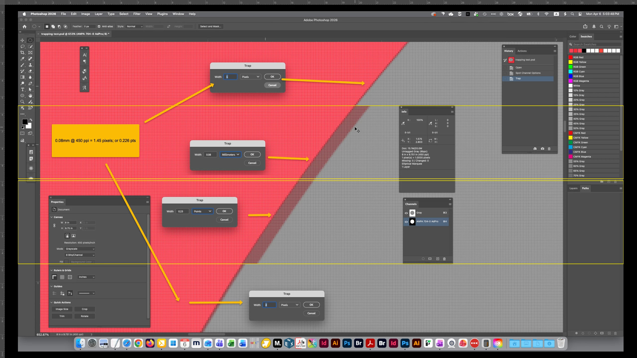 Traping appers much larger than the set values (pixels, milimetars, points).