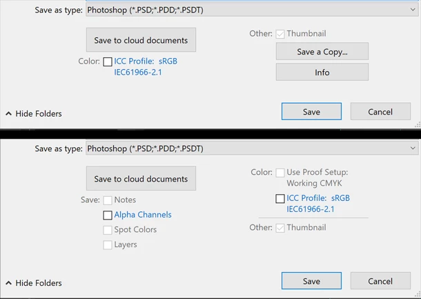 P: Save As dialogue is missing options