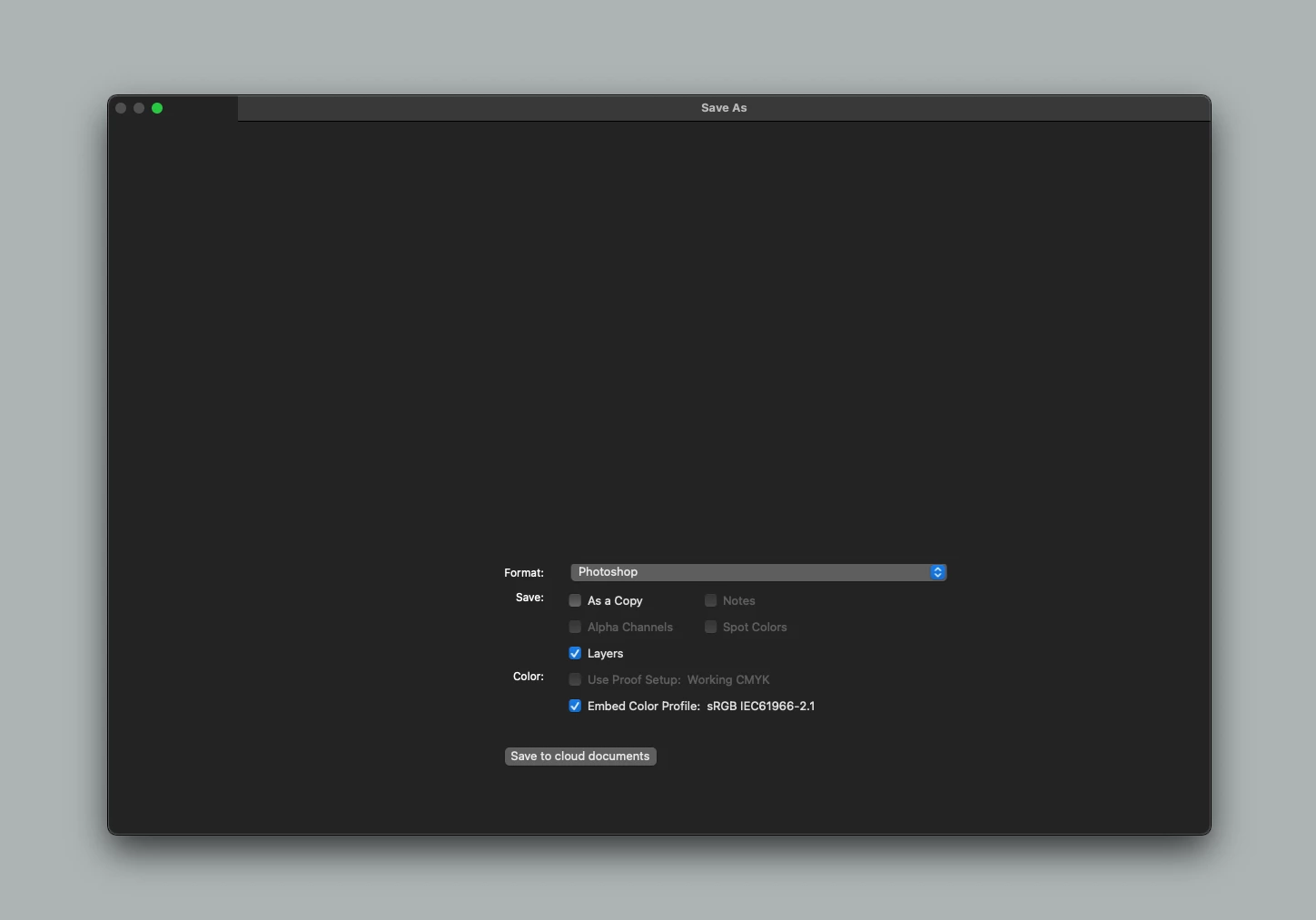 When I try to "Save As" I get no result. Normally a dialog box will pop up with format / file location options but it's no longer happening. I am trying to save a .psd file as a .psd file.