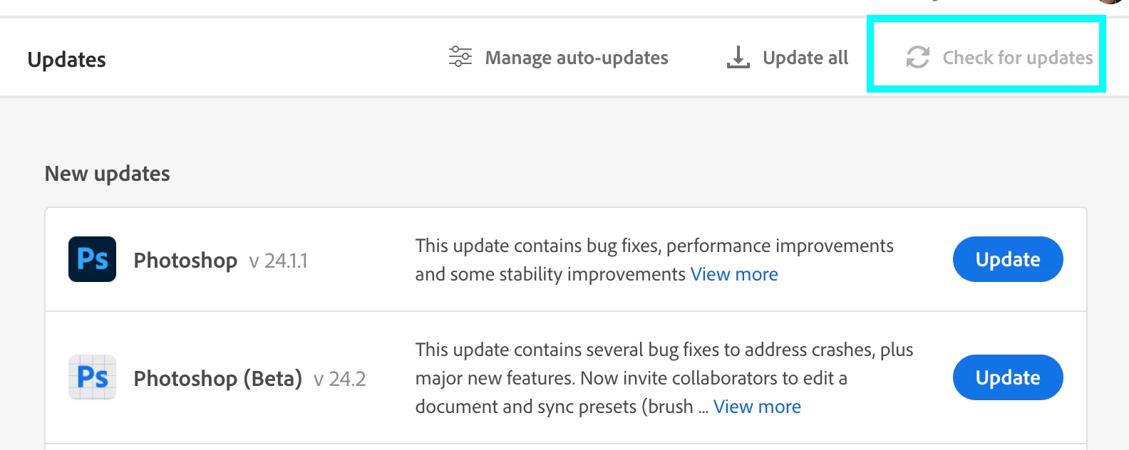 The CC updater says that I updated 4 days ago. 24.1.1 does not appear to be availale. No further option comes up.