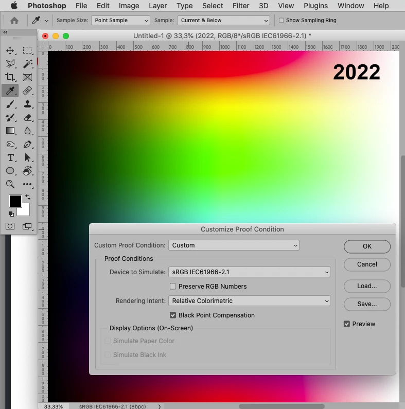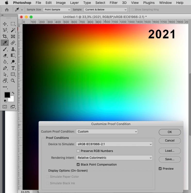- Set proofing profile to sRGB IEC61966-2.1