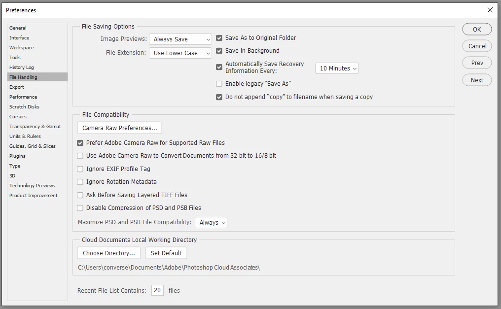 I guess I'm one of the lucky ones, in that I actually do have the setting as an option, but that still doesn't make up for the fact that the folks behind Photoshop decided "for me" that I was going to be saving to the Cloud as a default setting. They need to leave my copy of the program alone. I should be the one deciding where I save my files to, not some guy at corporate who thinks he knows best.