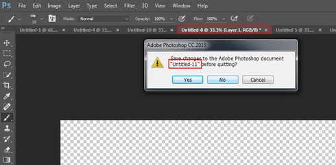 I find that if I have a lot of documents open at the end of working on something (Usually 10+) that when I quit I often have images that I've started/altered or pasted something in that I might need later without saving. When I want to close Photoshop it pops up dialog boxes asking if I want to "Save changes to Adobe Photoshop Document Untitled-4.psd" before quitting. The problem that I have is that it doesn't switch to the tab that has "Untitled-4.psd" on it. It just shows the dialog box over some other random image, so I end up having to click "Cancel" then find "Untitled-4.psd" and check if I want to save it or not. What it should do instead is switch to the document listed on the dialog box so that we can check if we want to save it or not.
