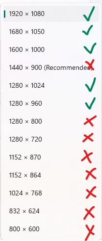@CShubert Annd... For some reason it's not working again when I am switching to 1440x900 or 1280x800. At the same time, when using 1920x1080 or 2736x1824 resolution, it works fine.  I also provided a complete list of screen resolutions, where it works and where it doesn't, hope that helps:
