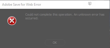 I am using "Export save for web" but everytime I try to save the file an error message pops up. It reads "Could not complete this operation. An unknown erro has occured."