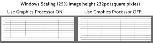When using a Windows DPI scaling of 125%, images of 232px high become blurry even when viewed at 100% zoom. Turning off "Use Graphics Processor" fixes the problem. Also, setting Windows DPI scaling to 100% fixes the problem.