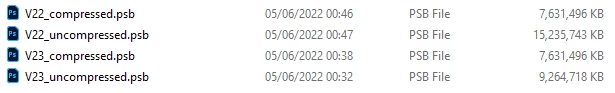 As an example, on my current PC a psb file on disk at 8.2GB now saves at 5.4GB but with a lengthened save time. The PC is Windows 10, i9-10920X, save to NVMe drives