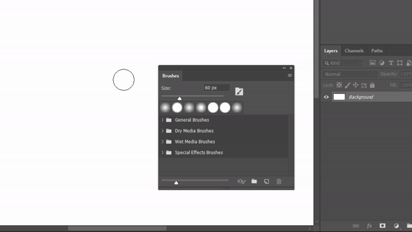 in photoshop2021 * something wrong. You can only see the first and last brush changes in size. In the middle, it appears to be slow (or broken) as if there is a delay.