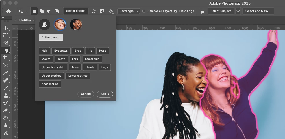 The Select Details tutorial shows part of the hand of the first woman as if it's one of the second one's hand. Not sure if there's a way to modify what gets detected automatically, but it doesn't seem like a good way to advertise a new resource.