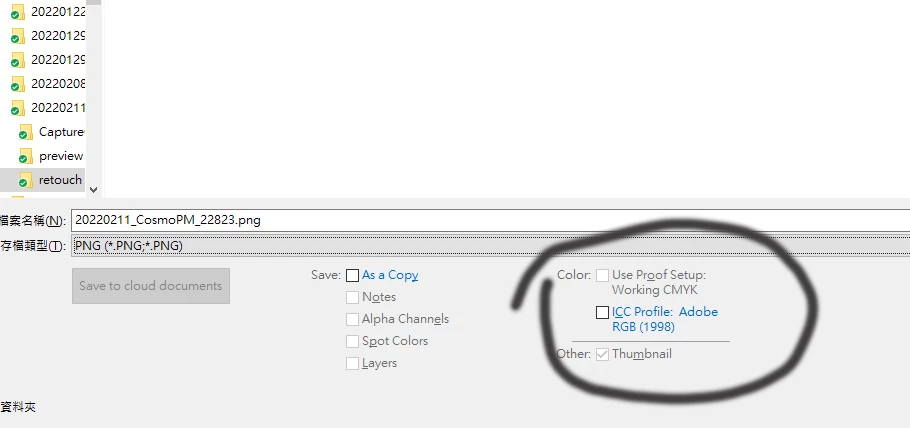 P: When save a tif or jpg as .png, the icc profile unclick