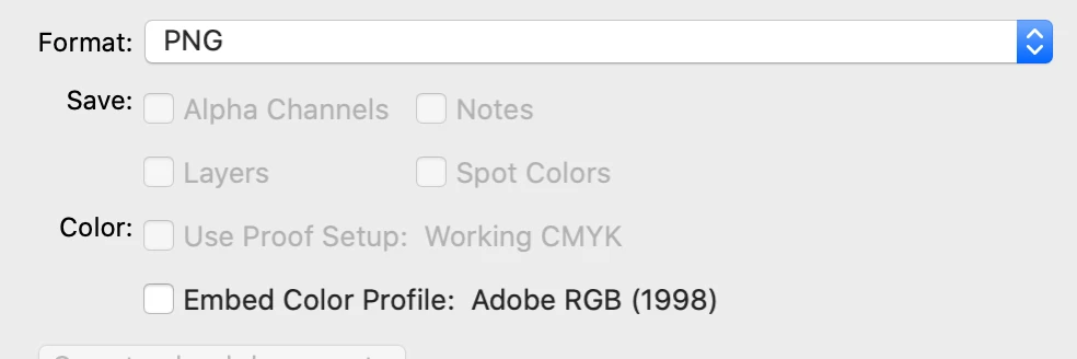 In Photoshop 23.2.1, when doing a Save As Copy PNG, the Embed Color Profile checkbox is unchecked every time.