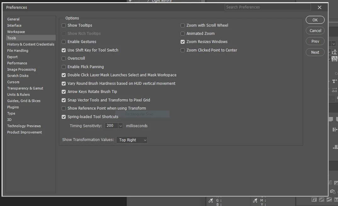 Preferences: Tools: untick Overscroll, tick Zoom Resizes Windows
