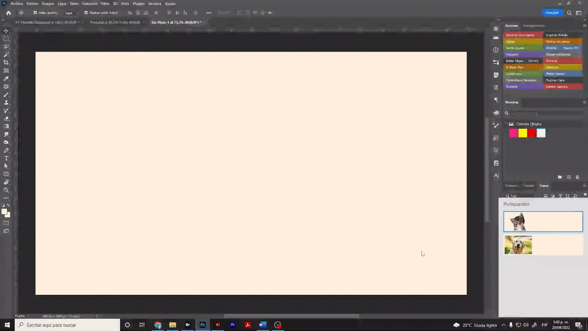 Photoshop entra en conflicto con el historial de portapapeles de Windows 10 al tratar de pegar una imagen, solo pega la última que se copió.
