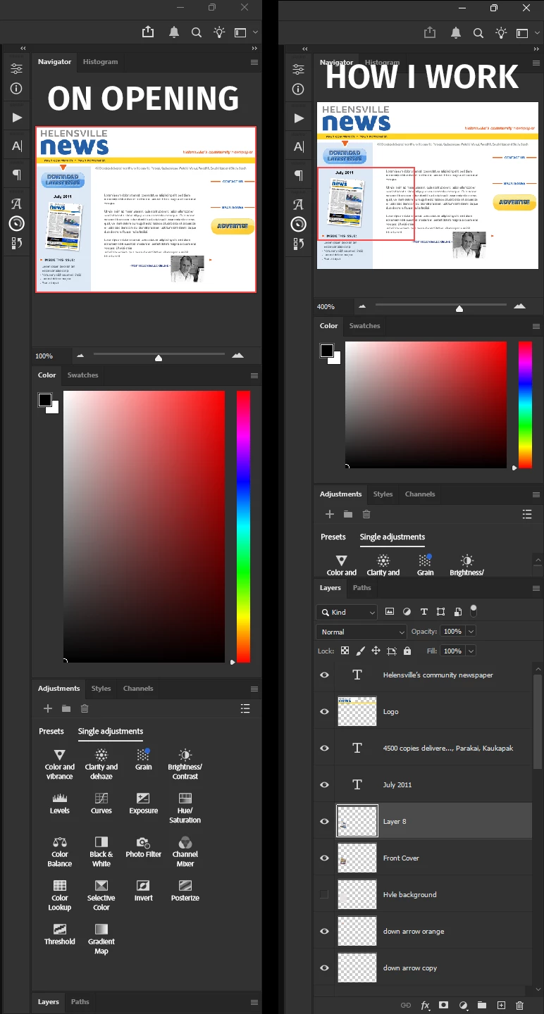 I’ve attached pix showing how they look when PS opens, and how I set them to work.