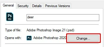 Method 1: After I select Photoshop from C:\Program Files\Adobe\Adobe Photoshop 2020\, nothing happens or changes. In this case, I have a file on my desktop. Once I follow the above procedure, I go back on my desktop (it didn't open PS 2020). I then double click the file, and the prior version of PS opens.