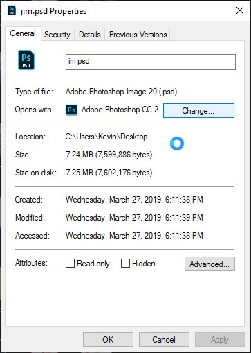 •  Right-Click on the PSD file and go to Properties.
