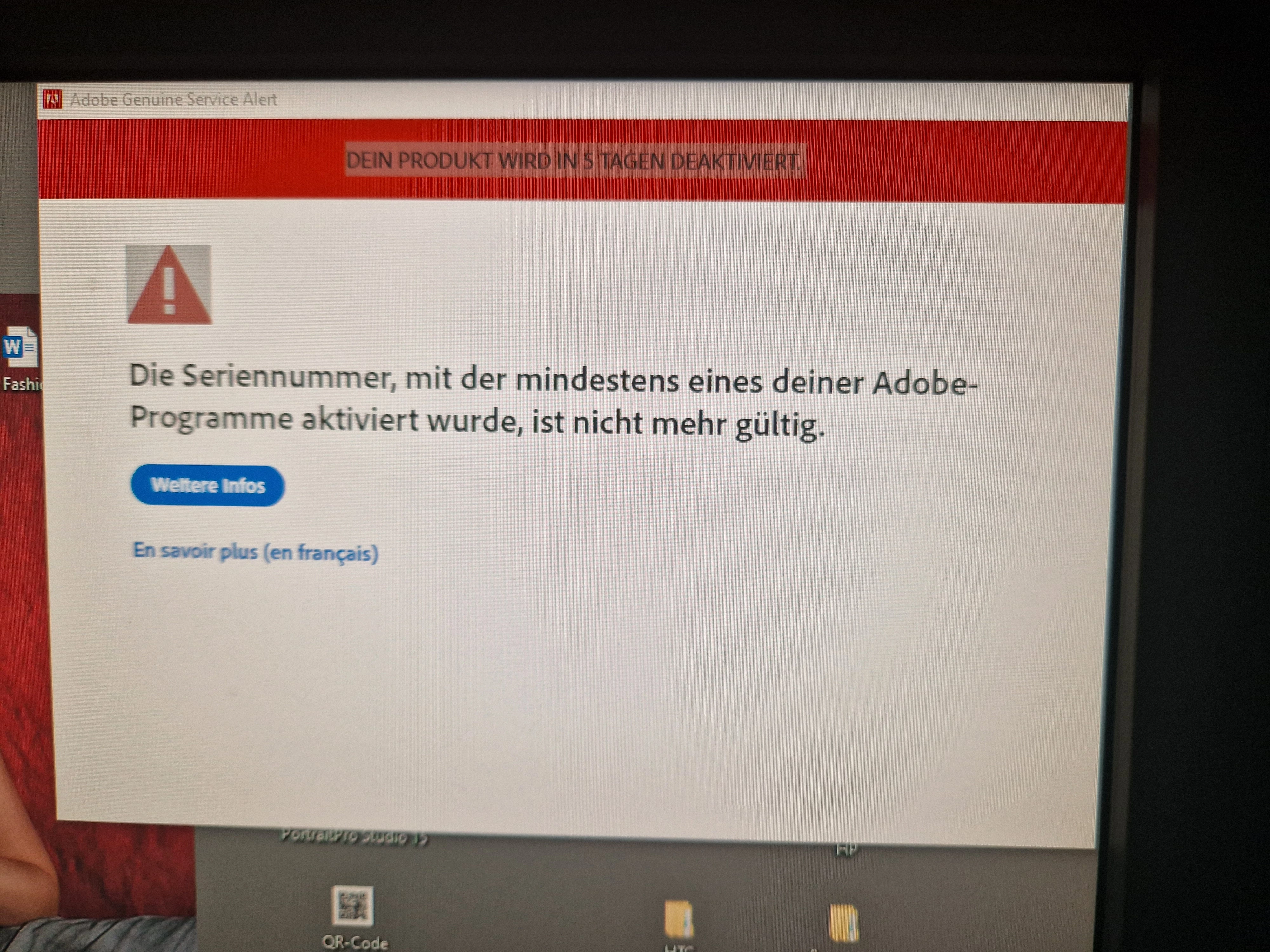 Ich kann nicht nachvollziehen, weshalb jetzt eine Software die ich legal erworben habe, plötzlich nicht mehr gültig sein soll.