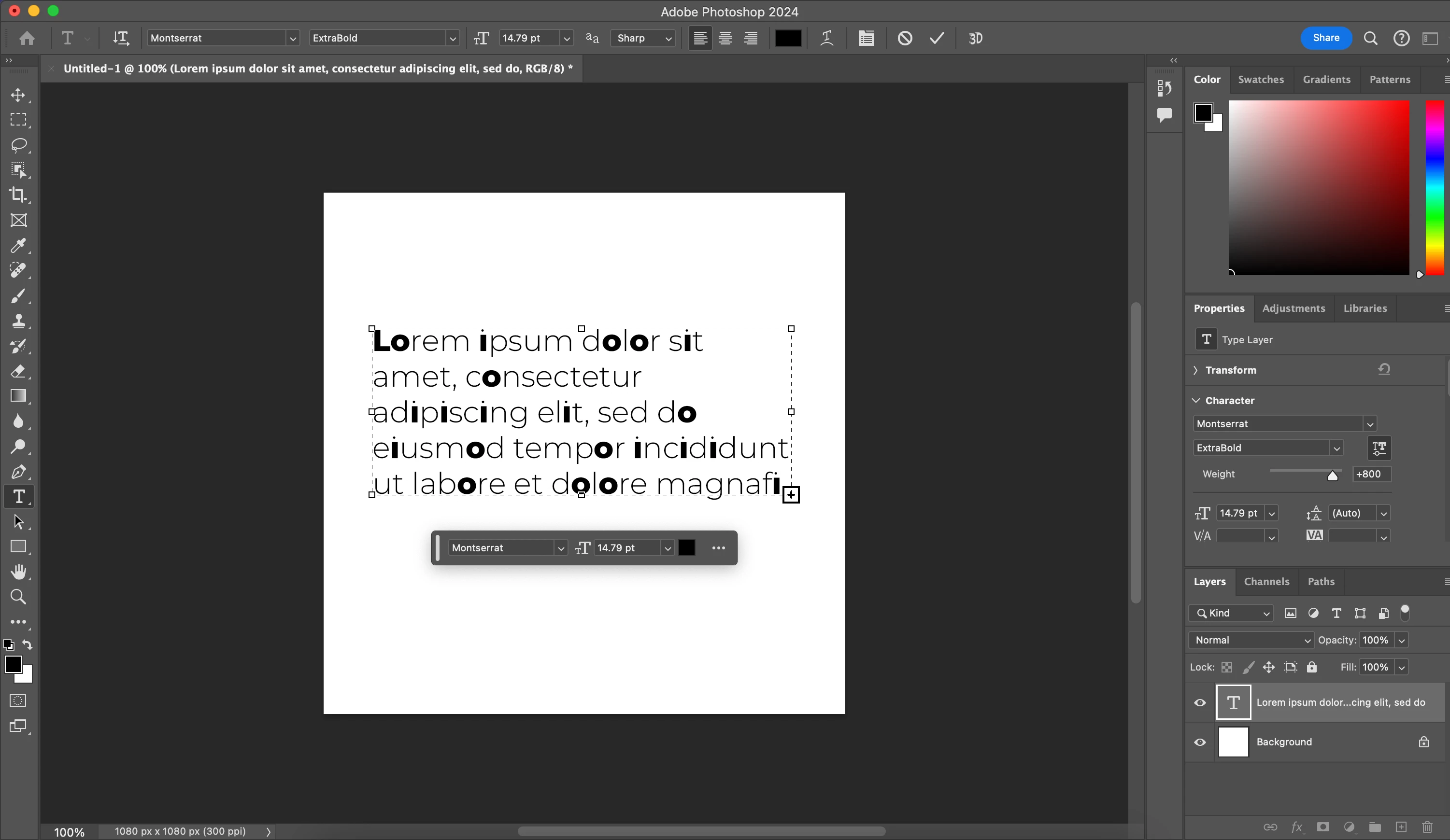 I just downloaded Photoshop 2024 (Version 25.3.1) and I'm trying to set my font as Montserrat Extra Bold but only some letters are changing - the others remain as Montserrat Thin. Couple of quick notes: