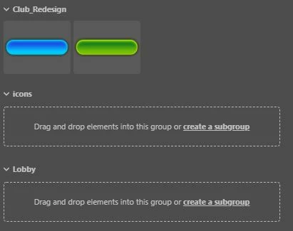 In fact, in this library, in each group (Club Redesign, Icons, Lobby) there are multiple assets added. But what we can see is like shown above.