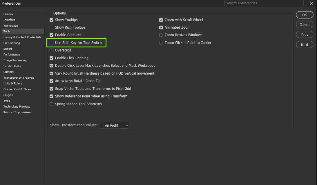 Photoshop Tool Selection Issue: Tools Only Selectable with Shift Key (v25.11.0)