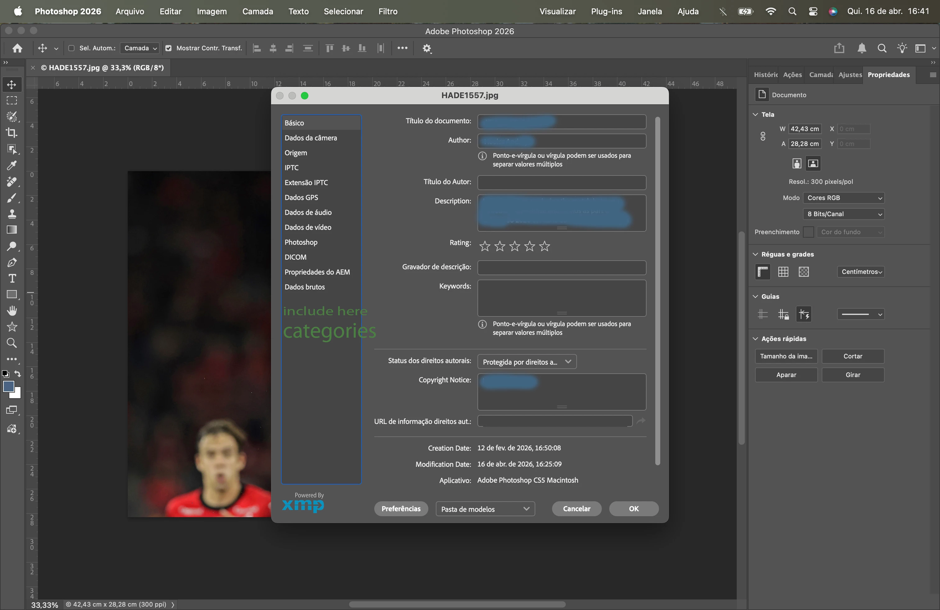 Please, I need the categories tab to be reactivated when I open the file information (shift + option + command + i) while editing photos. This feature is very important for photographers who work with news agencies. thanks so much !